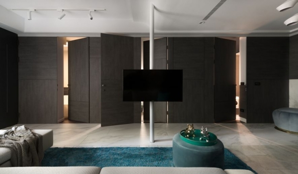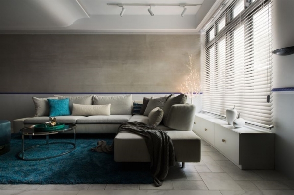 总是怀抱着全案设计精神的曾总监,本次同样坚持从空间到软件一体规划,以品牌经典的中性色系、简约线条为基础,烘托业主喜爱的深海蓝调,再搭佐进